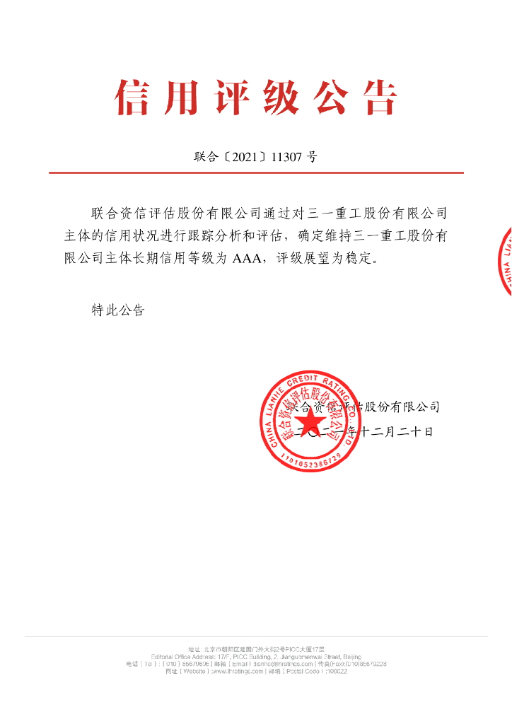 联合资信:三一重工股份有限公司主体信用评级报告及跟踪评级安排.pdf