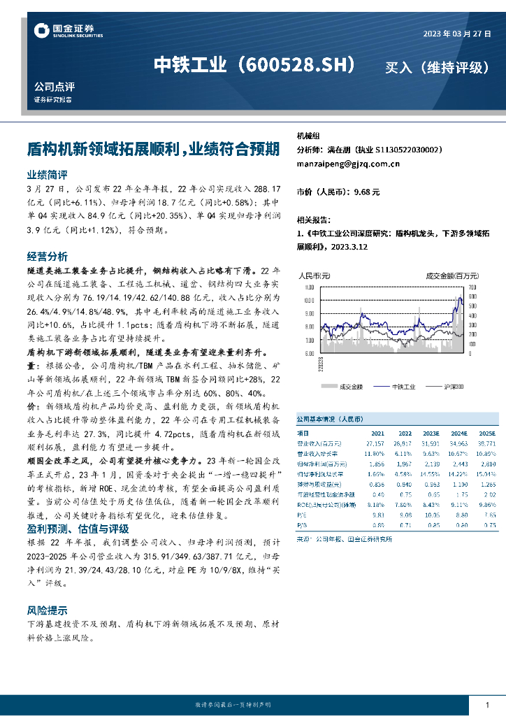 国金证券:中铁工业(600528)-盾构机新领域拓展顺利,业绩符合预期.pdf