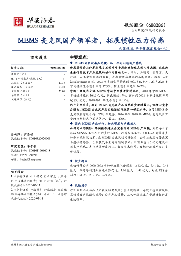 华安证券:敏芯股份(688286)-大国雄芯.半导体深度报告(八):MEMS麦克风国产领军者,拓展惯性压力传感.pdf