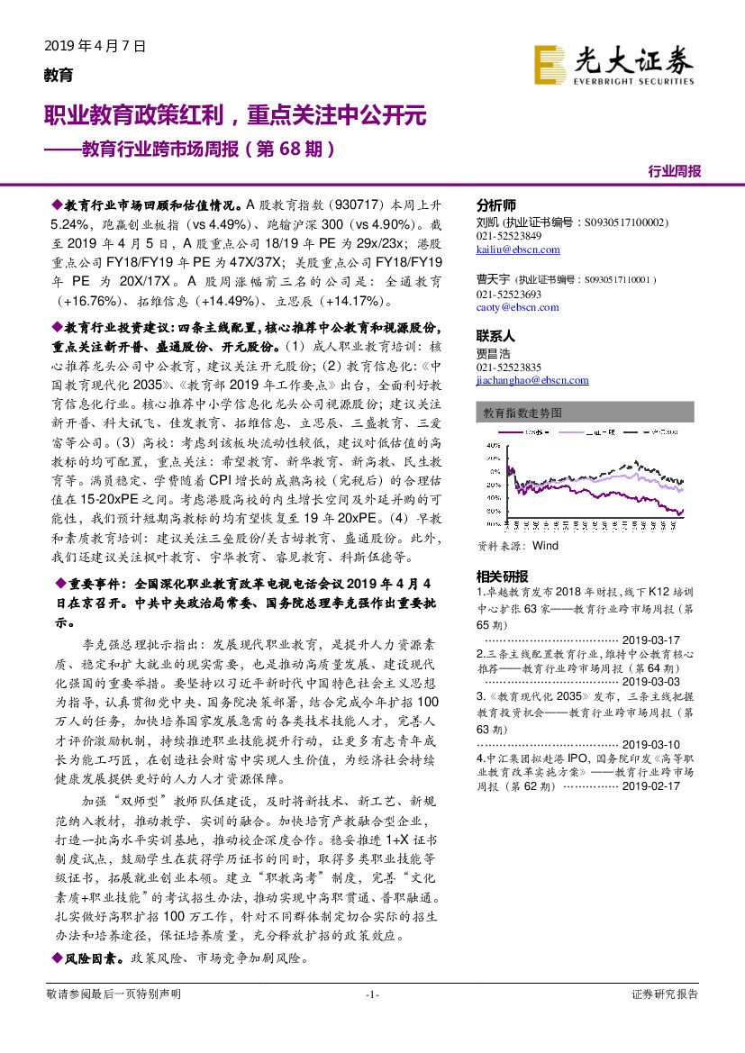 光大证券:教育行业跨市场周报(第68期):职业教育政策红利,重点关注中公开元.pdf