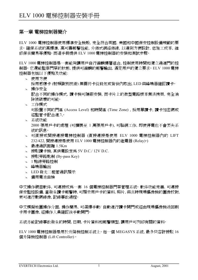 EVERTECH ELV 1000 電梯控制器 安裝手冊.pdf