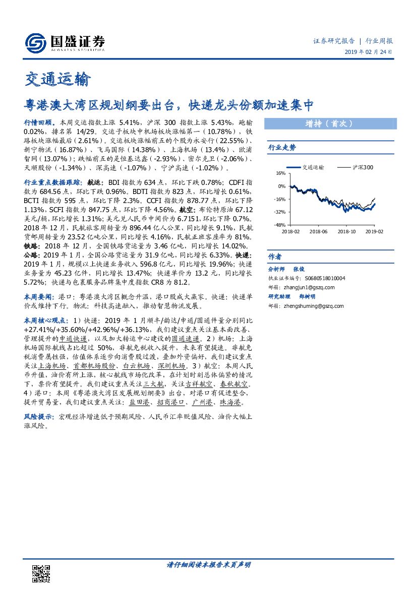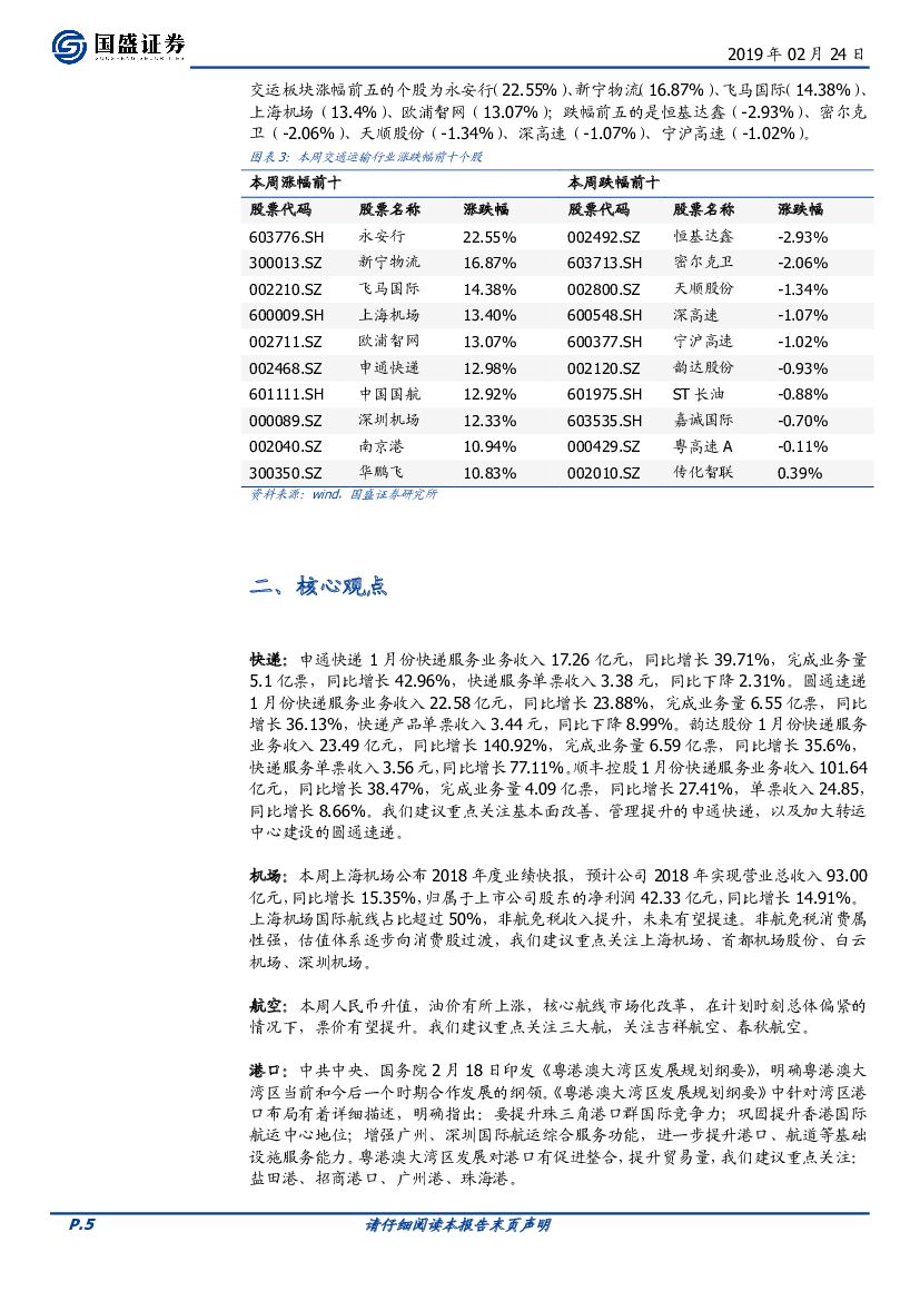 国盛证券:交通运输行业周报:粤港澳大湾区规划纲要出台,快递龙头份额加速集中.pdf