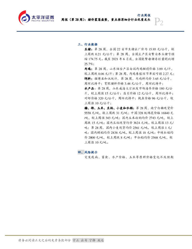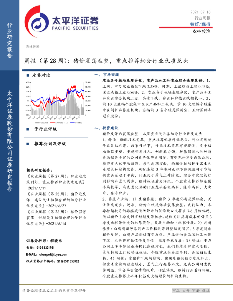 太平洋证券:农林牧渔周报(第28周):猪价震荡盘整,重点推荐细分行业优质龙头.pdf