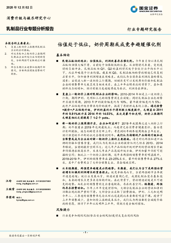 国金证券:乳制品行业专题分析报告:估值处于低位,奶价周期或成竞争趋缓催化剂.pdf