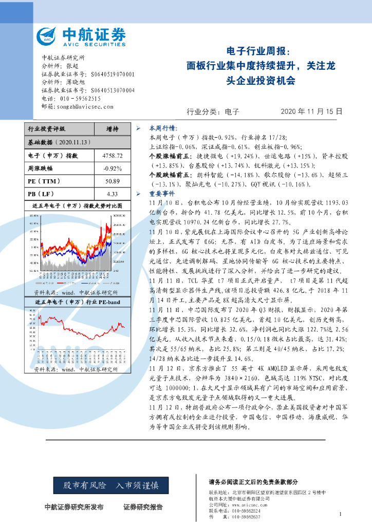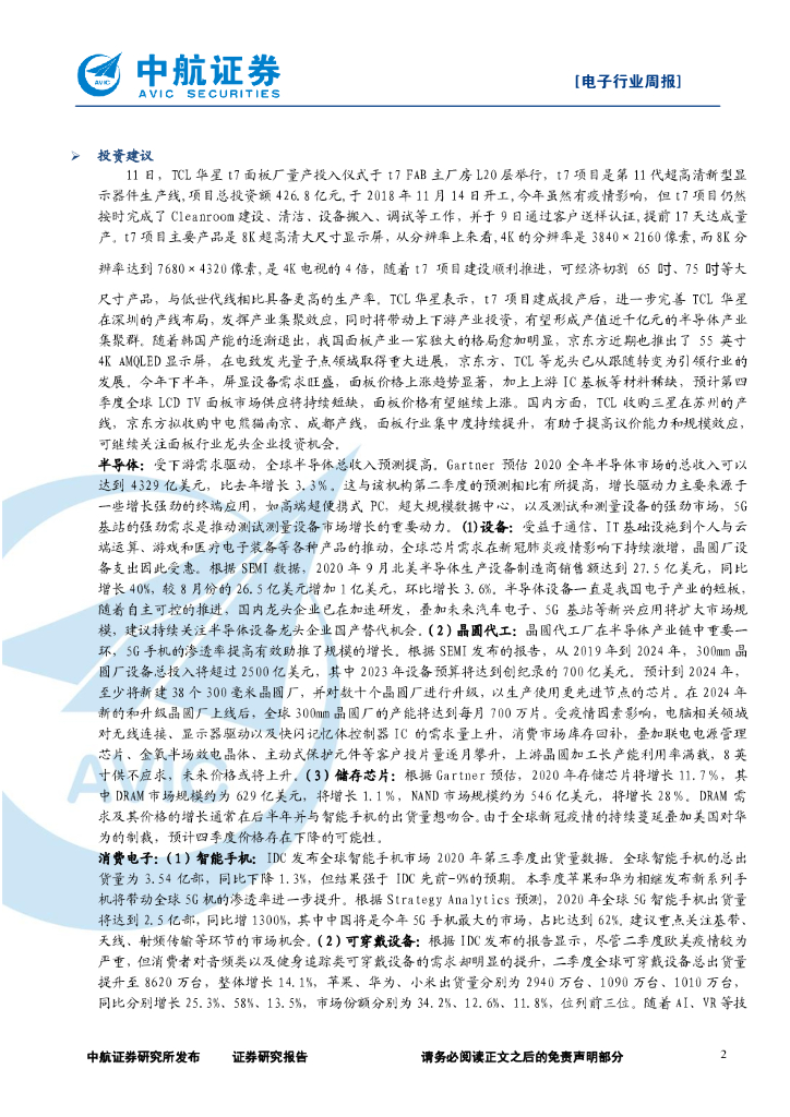 中航证券:电子行业周报:面板行业集中度持续提升,关注龙头企业投资机会.pdf