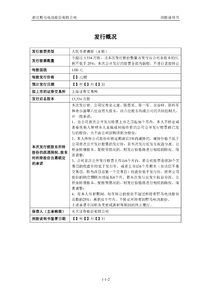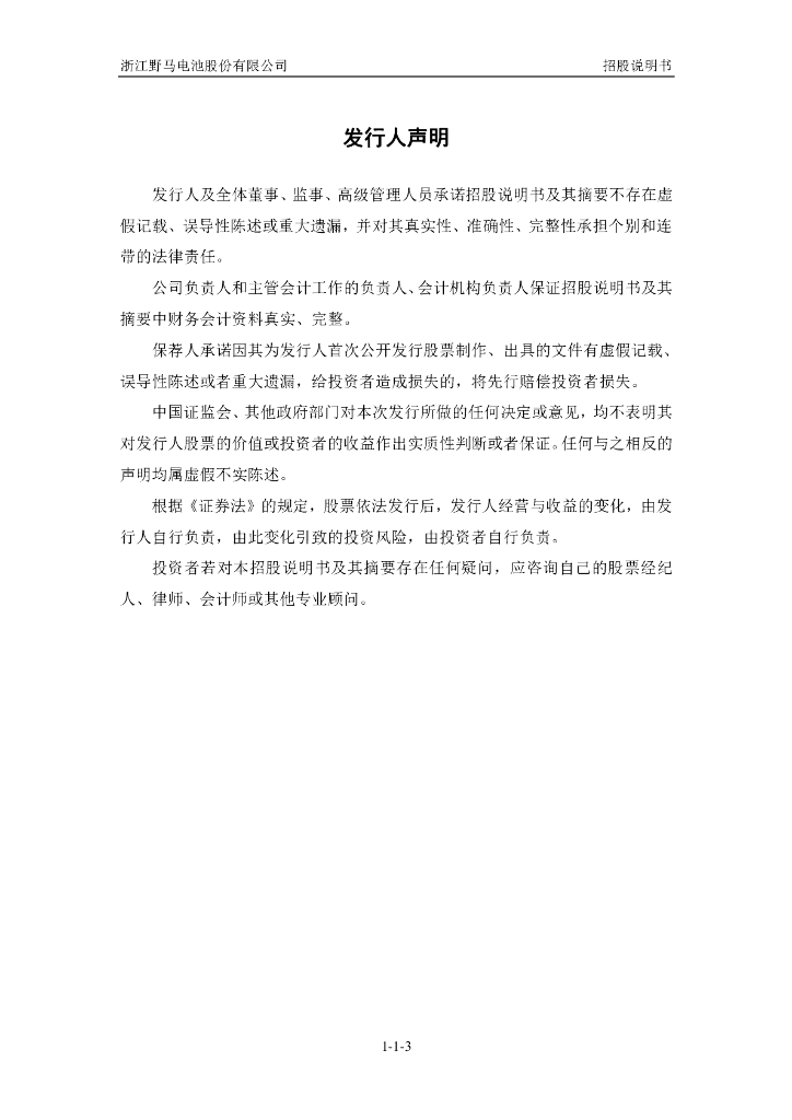 浙江野马电池股份有限公司上交所主板IPO上市招股说明书.pdf