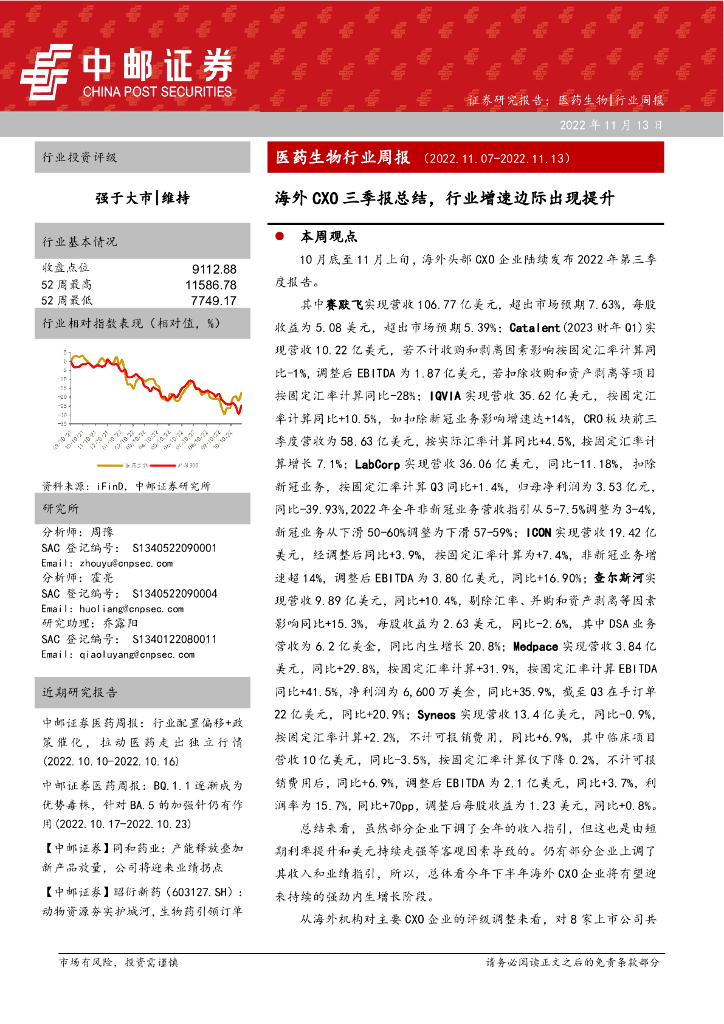 中邮证券:医药生物行业周报:海外CXO三季报总结,行业增速边际出现提升.pdf