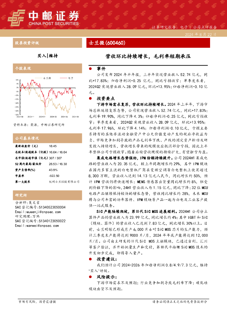 中邮证券:士兰微(600460)-营收环比持续增长,毛利率短期承压.pdf