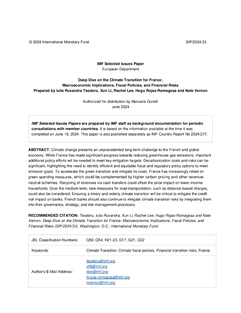国际货币基金组织:深入探讨法国的气候转型:宏观经济影响、财政政策和金融风险(英文版).pdf