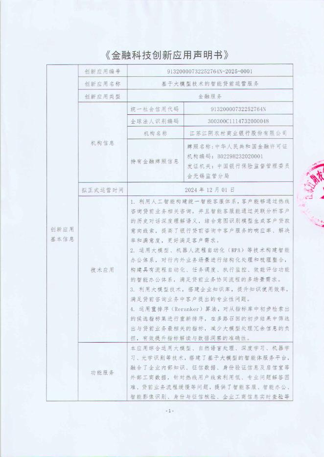 金融科技创新应用声明书:基于大模型技术的智能贷前运营服务.pdf