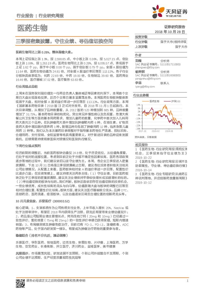 天风证券:医药生物行业研究周报:三季报密集披露,守住业绩、寻估值切换空间.pdf