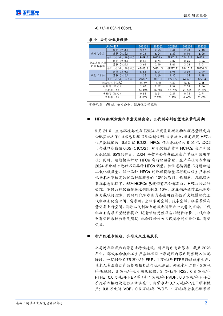 国海证券:永和股份(605020)-2023年三季报点评:三季度业绩短期承压,看好制冷剂景气修复.pdf