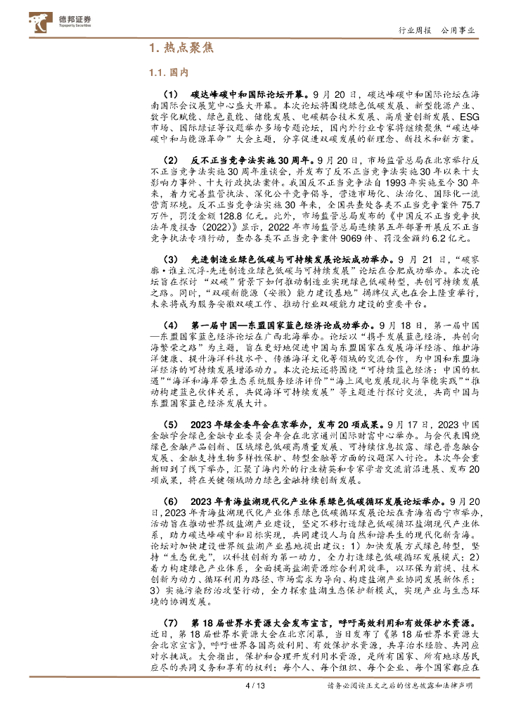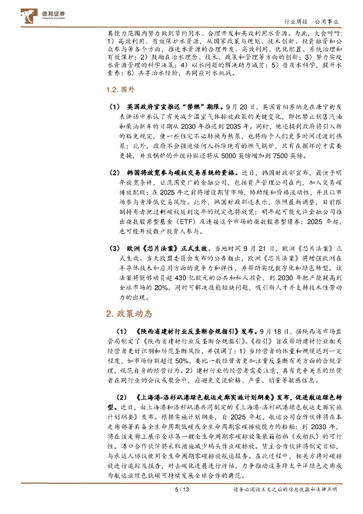 德邦证券:公用事业ESG周报:碳达峰碳中和国际论坛开幕,英国政府官宣推迟“禁燃”期限.pdf