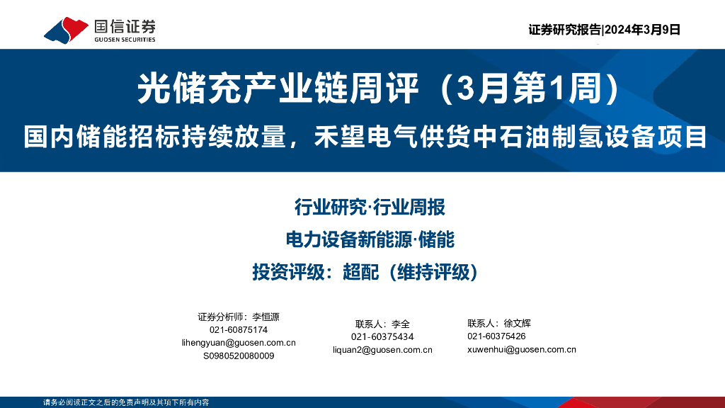 国信证券:光储充产业链周评(3月第1周):国内储能招标持续放量,禾望电气供货中石油制氢设备项目.pdf
