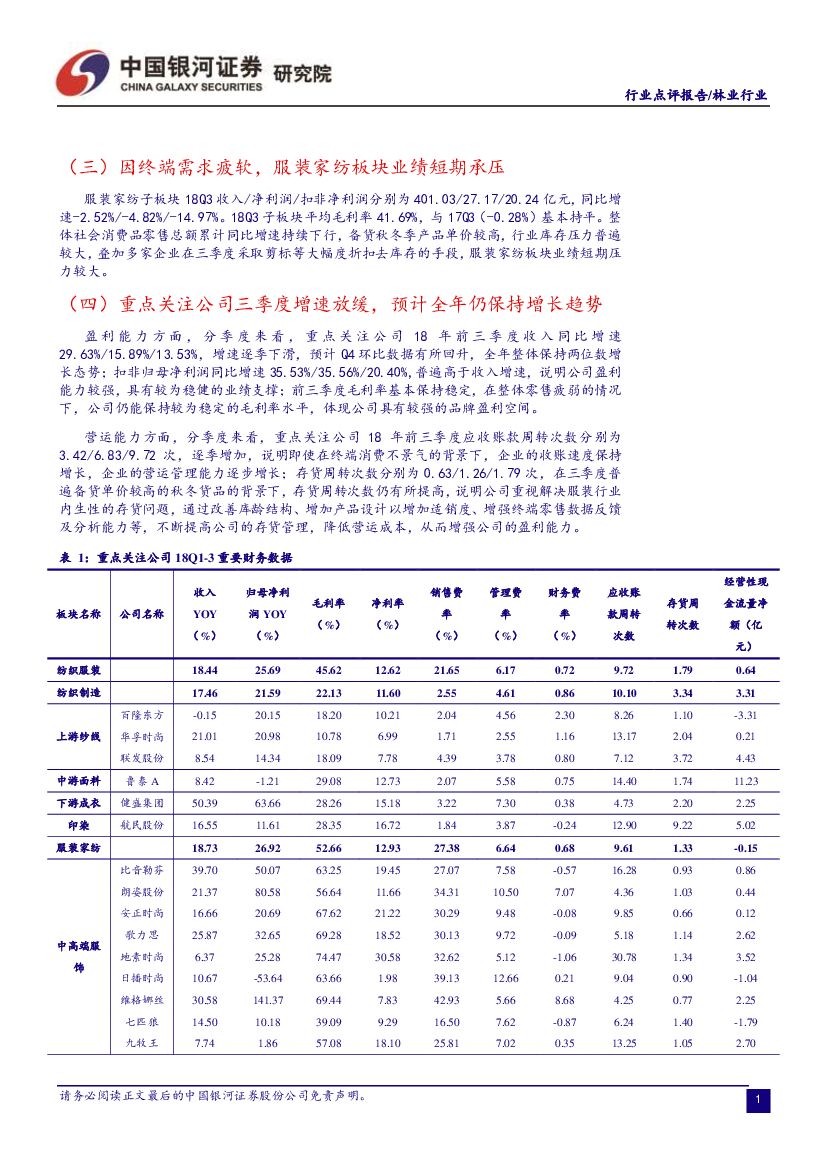 中国银河:纺织服装行业2018年三季报业绩回顾:品牌服饰业绩承压,纺织制造盈利显著提升.pdf