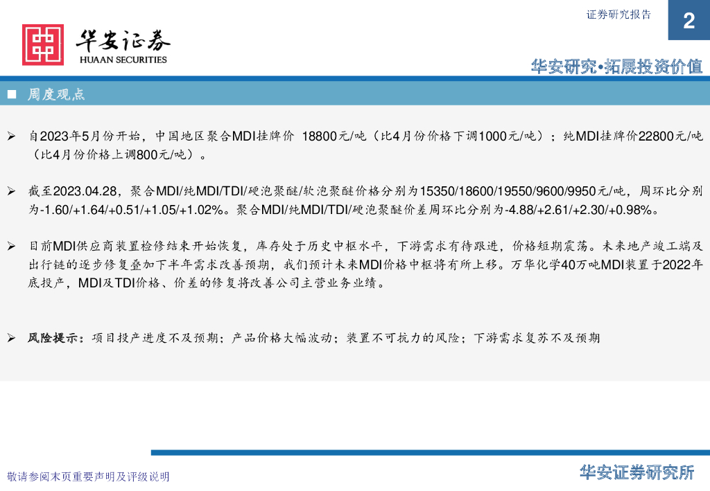 华安证券:万华化学基本面周度动态跟踪:MDI5月挂牌价涨跌波动,下游需求缓慢跟进.pdf