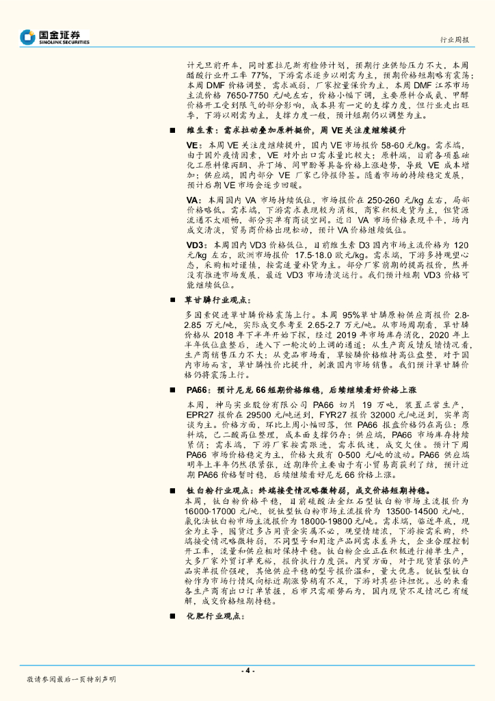 国金证券:基础化工行业研究:煤化工整体强势运行,VE、草甘膦价格有望上行.pdf
