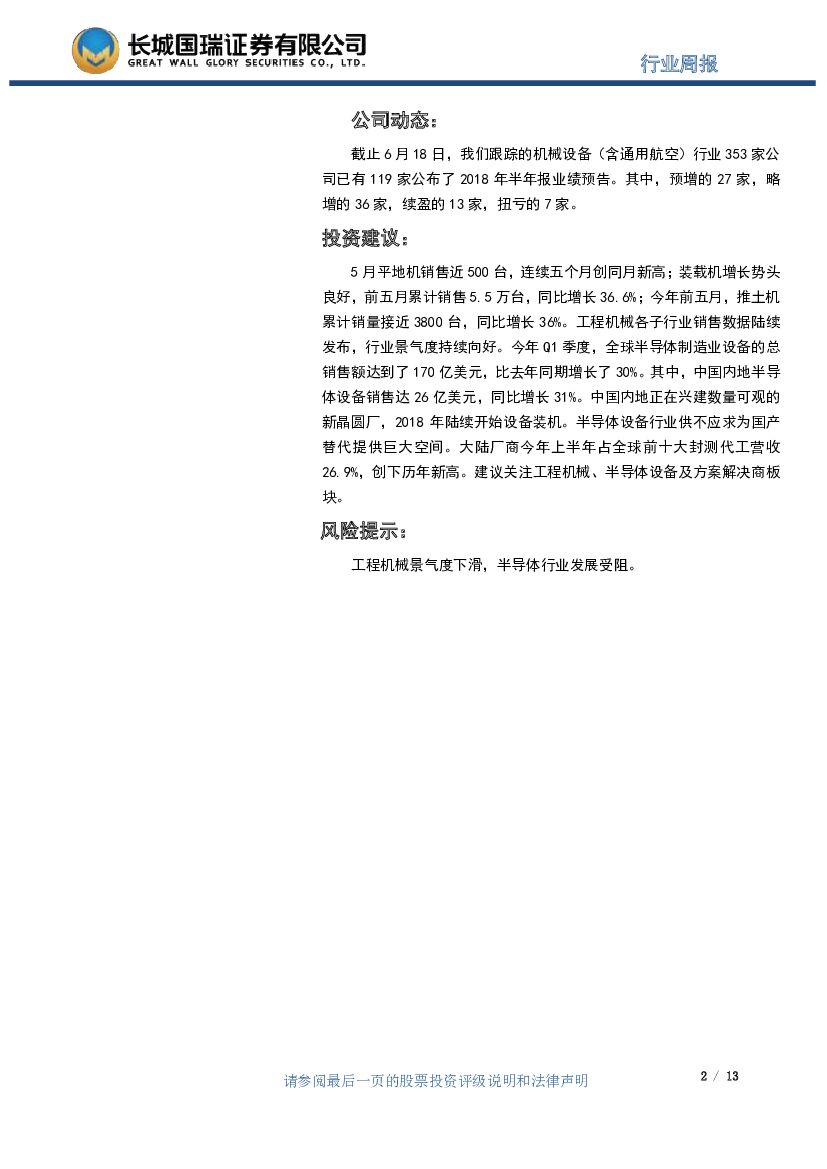 长城国瑞证券:机械设备行业周报2018年第24期(总第95期):工程机械景气度持续向好,国内半导体设备支出大增.pdf