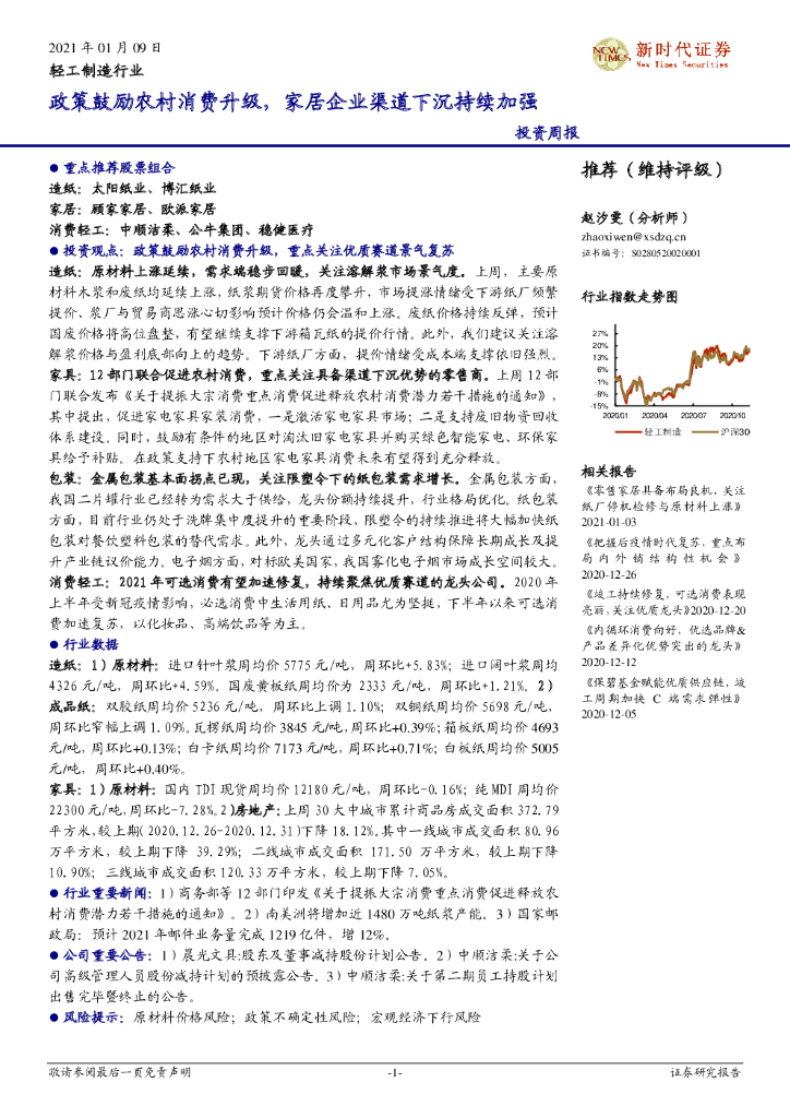 新时代证券:轻工制造行业投资周报:政策鼓励农村消费升级,家居企业渠道下沉持续加强.pdf