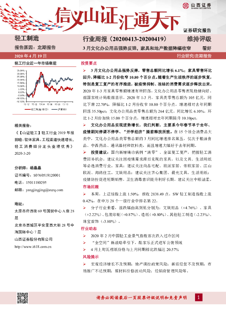 山西证券:轻工制造行业周报:3月文化办公用品强势反弹,家具和地产数据降幅收窄.pdf