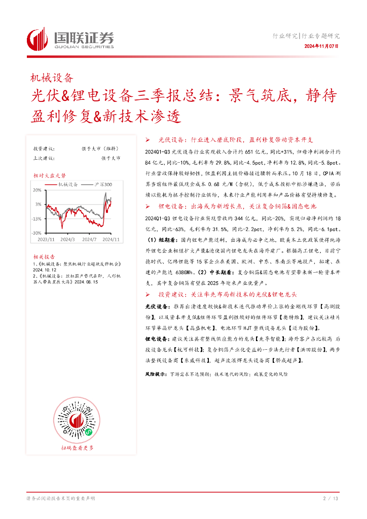 国联证券:光伏&锂电设备三季报总结:景气筑底,静待盈利修复&新技术渗透.pdf