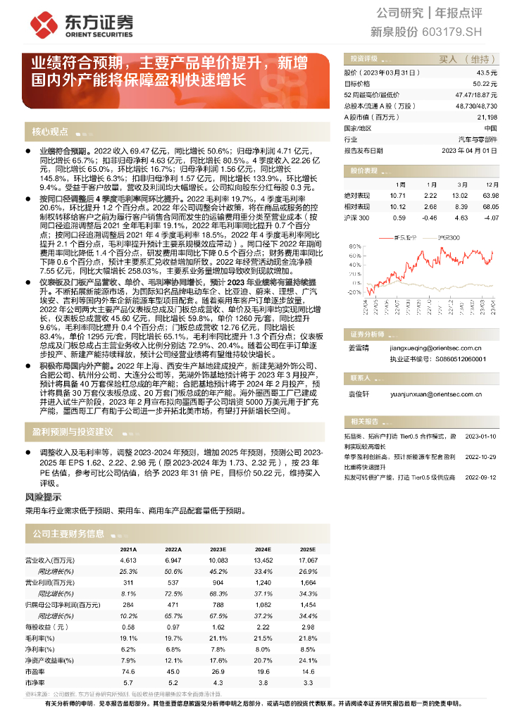 东方证券:新泉股份(603179)-业绩符合预期,主要产品单价提升,新增国内外产能将保障盈利快速增长.pdf