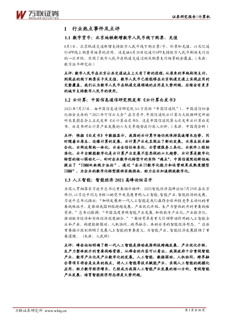 万联证券:计算机行业周观点:智能经济2021高峰论坛顺利召开,重视智能产业发展.pdf