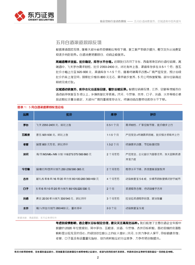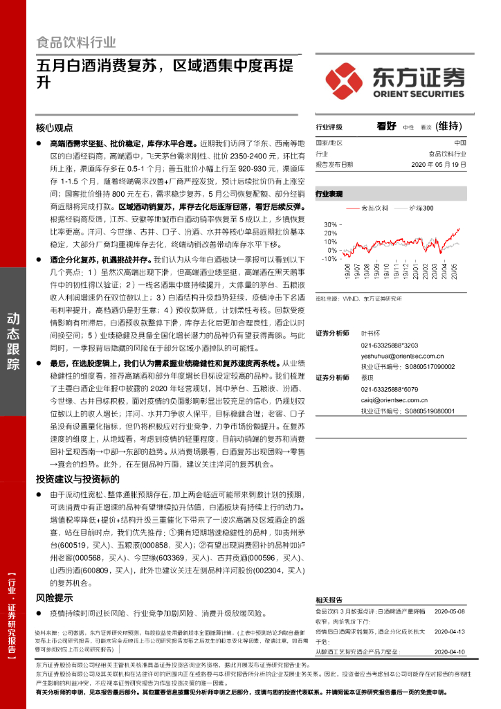 东方证券:食品饮料行业:五月白酒消费复苏,区域酒集中度再提升.pdf