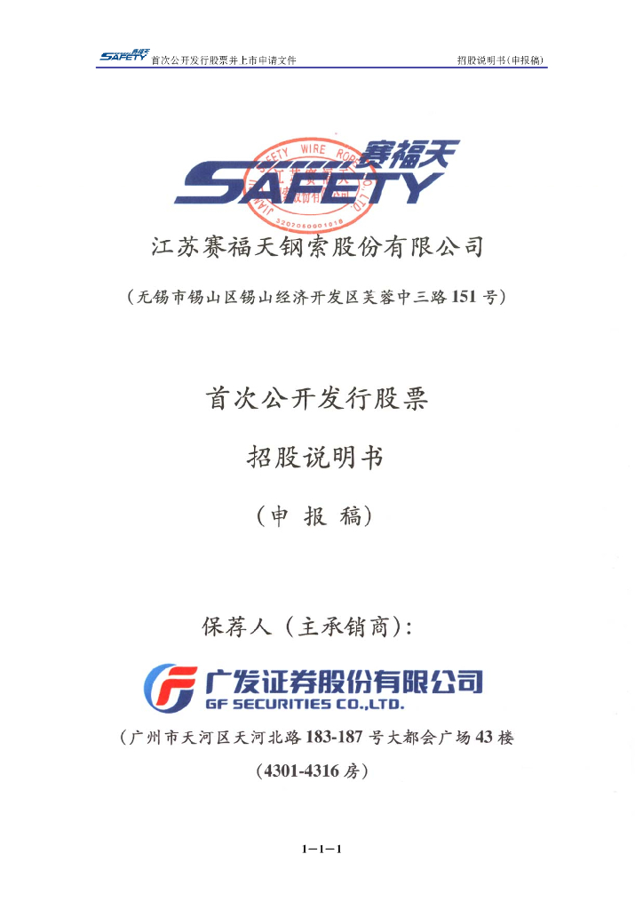 江苏赛福天钢索股份有限公司上交所主板IPO上市招股说明书.pdf