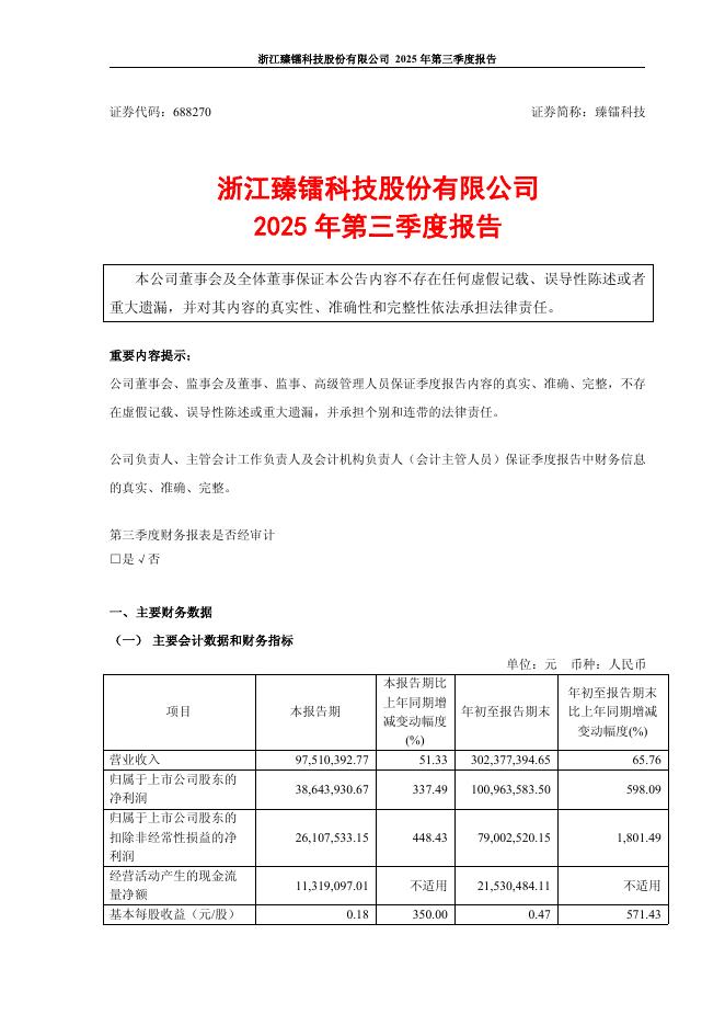 688270-臻镭科技:浙江臻镭科技股份有限公司2025年第三季度报告.pdf