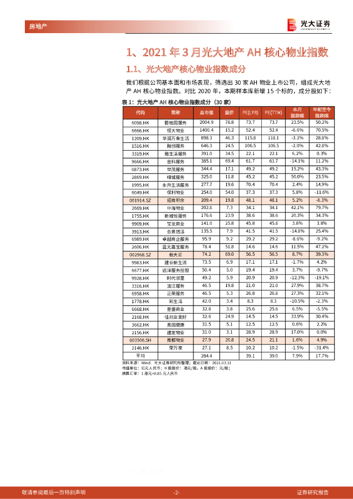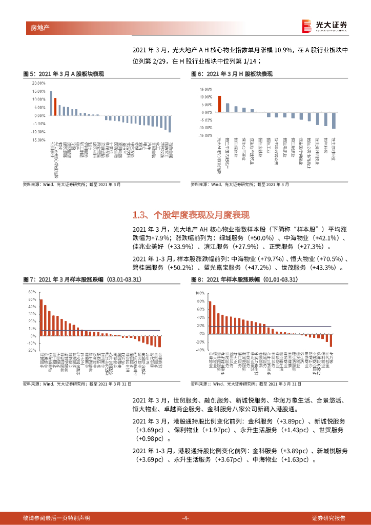 光大证券:光大地产A+H物业板块月度跟踪(2021年3月):三月光大AH核心物业指数上涨10.9%,板块整体表现较好.pdf