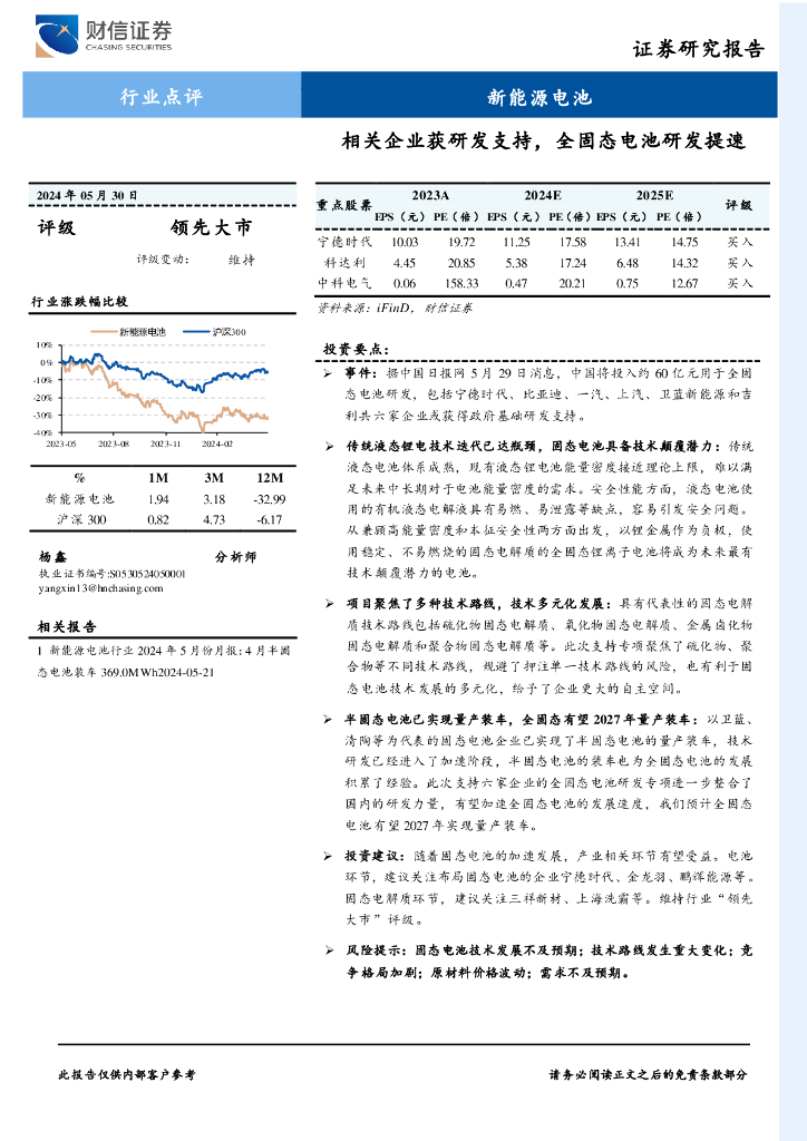 财信证券:新能源电池行业点评:相关企业获研发支持,全固态电池研发提速.pdf