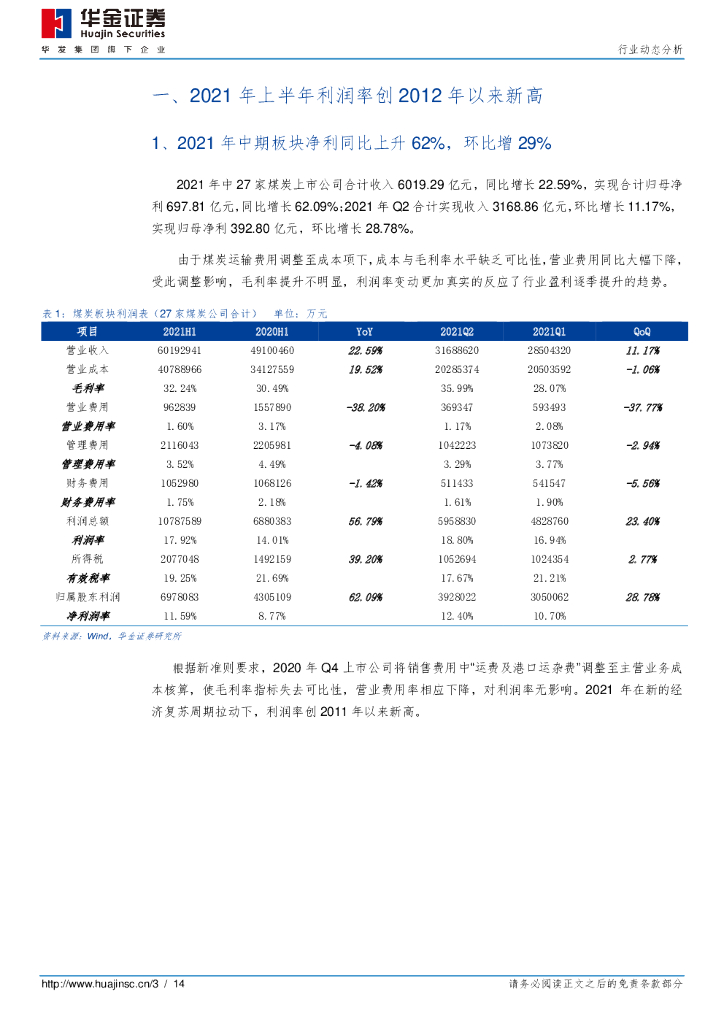 华金证券:煤炭行业动态分析:吨煤净利创10年新高,公司间盈利方差扩大.pdf
