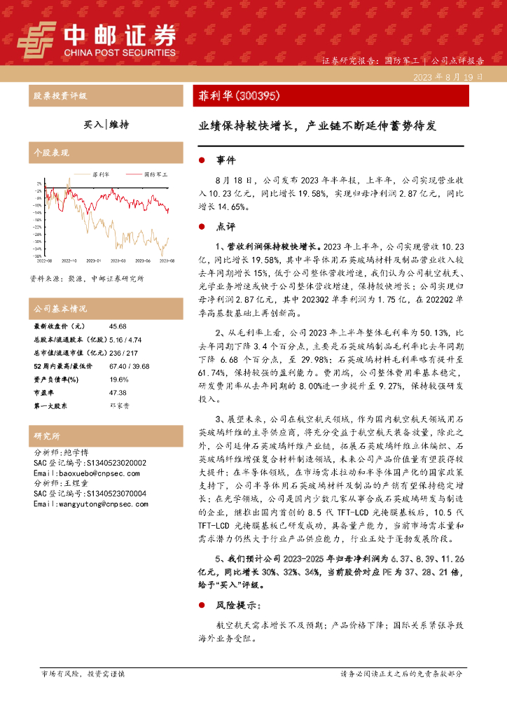 中邮证券:菲利华(300395)-业绩保持较快增长,产业链不断延伸蓄势待发.pdf