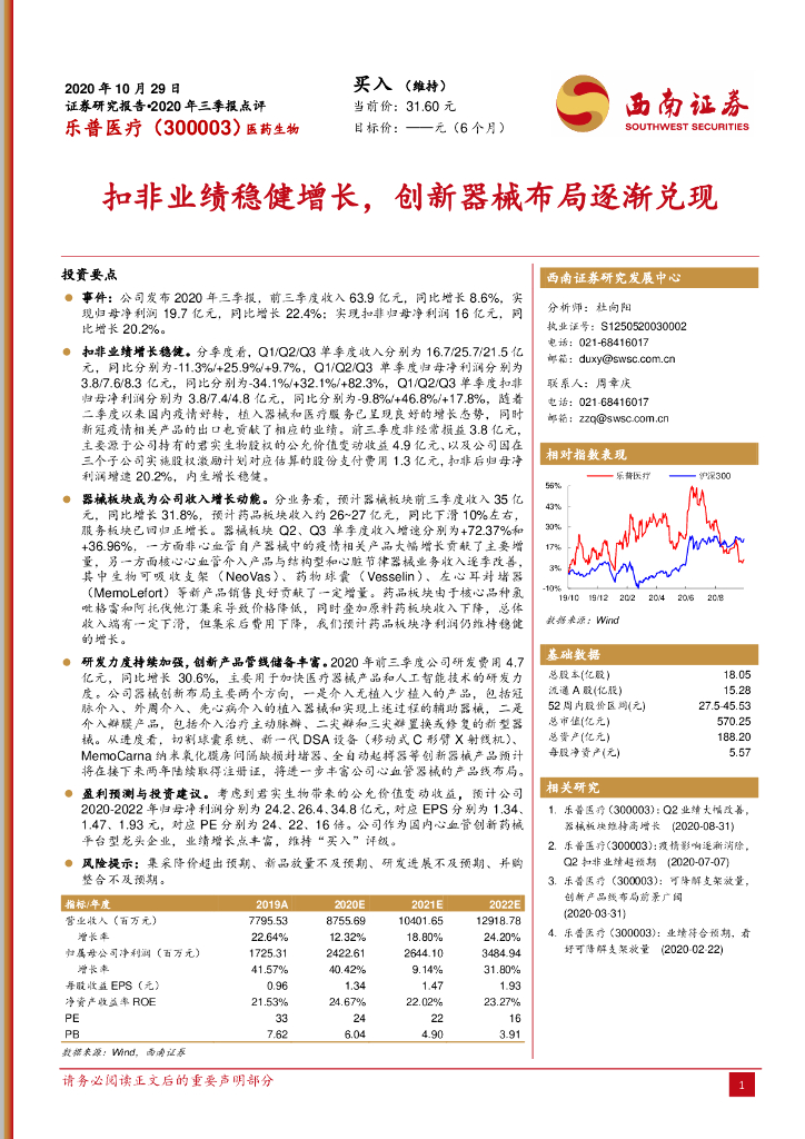 西南证券:乐普医疗(300003)-扣非业绩稳健增长,创新器械布局逐渐兑现.pdf
