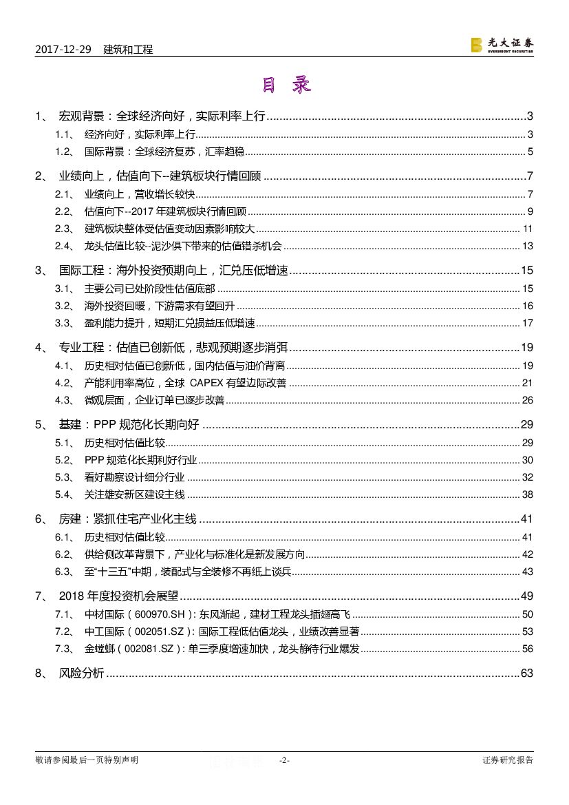 光大证券:建筑与工程2018年投资策略:短期侧重估值底部的细分领域,国际工程及专业工程确定性更高.pdf