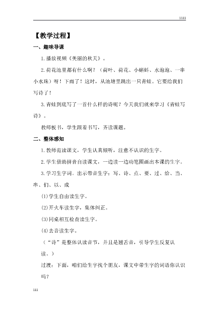 一年级语文(教案3)7 青蛙写诗教学设计.doc