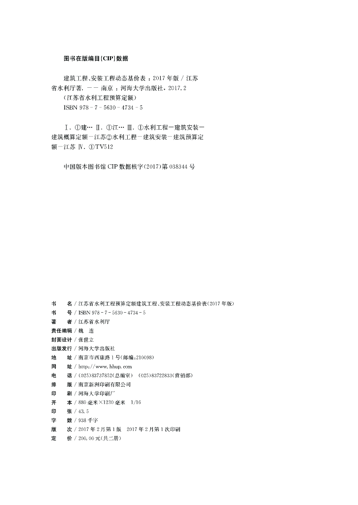 江苏省水利工程预算定额建筑工程、安装工程动态基价表(2017年版).pdf