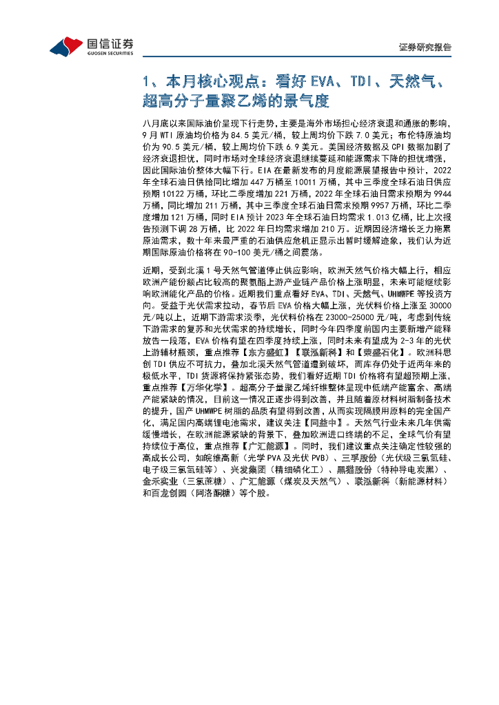 国信证券:化工行业2022年10月投资策略:看好EVA、TDI、天然气、超高分子量聚乙烯的景气度.pdf