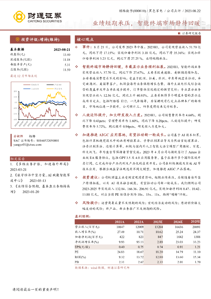 财通证券:创维数字(000810)-业绩短期承压,智能终端市场静待回暖.pdf