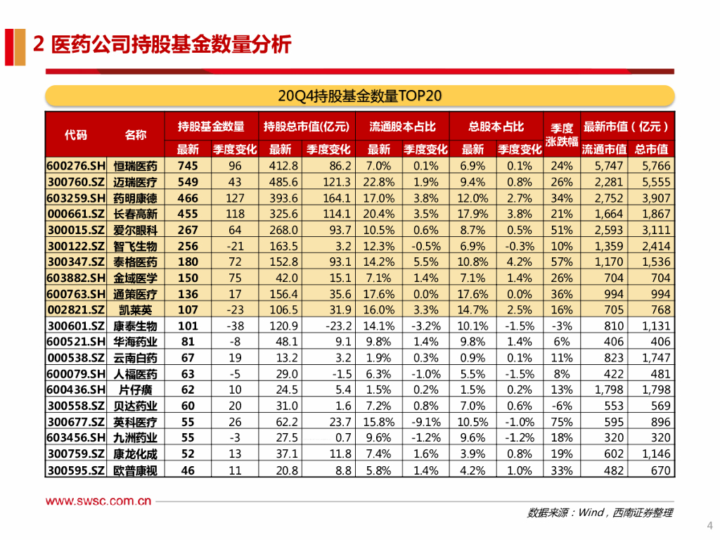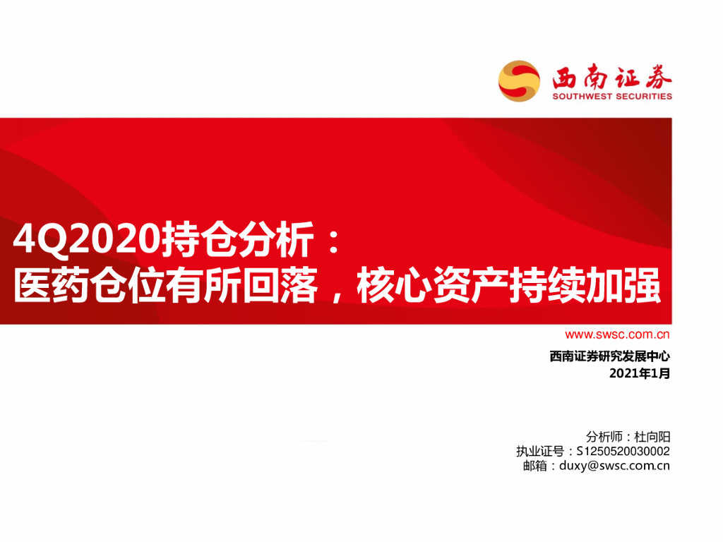 西南证券:医药4Q2020持仓分析:医药仓位有所回落,核心资产持续加强.pdf