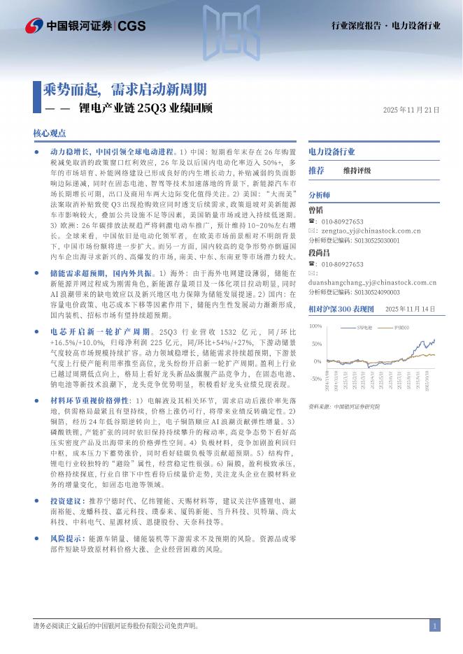 中国银河:锂电产业链25Q3业绩回顾:乘势而起,需求启动新周期.pdf