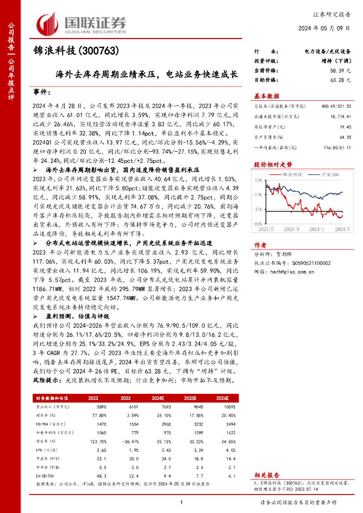 国联证券:锦浪科技(300763)-海外去库存周期业绩承压,电站业务快速成长.pdf