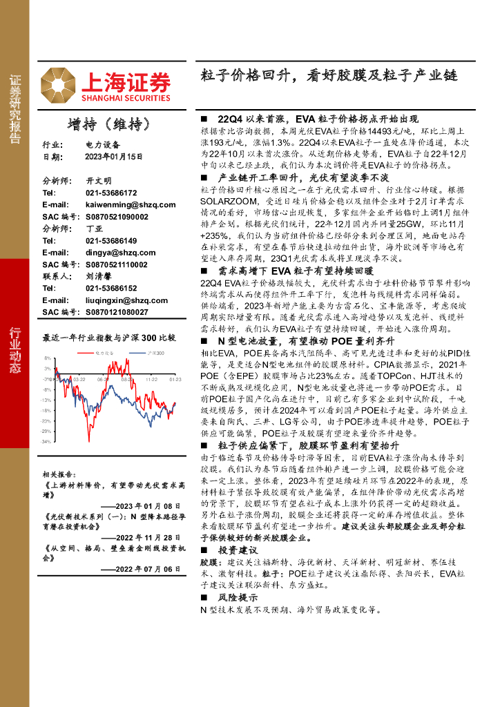 上海证券:电力设备:粒子价格回升,看好胶膜及粒子产业链.pdf
