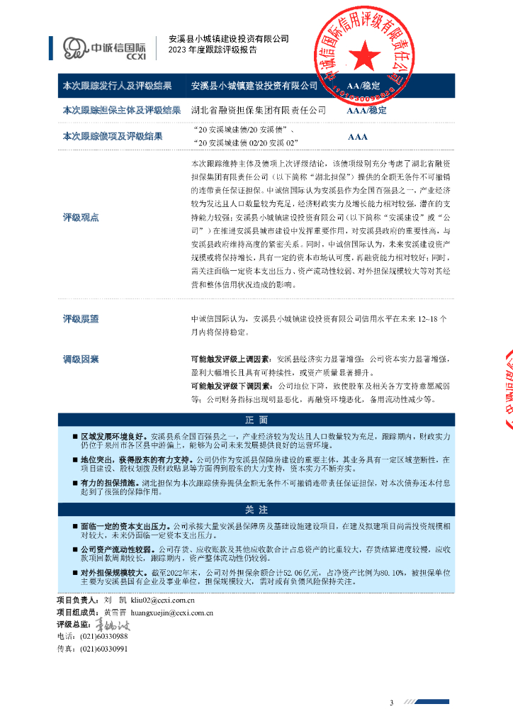 中诚信:安溪县小城镇建设投资有限公司2023年度跟踪评级报告.pdf