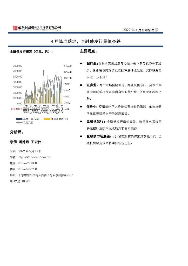 东方金诚:2022年4月金融债月报:4月降准落地,金融债发行量价齐跌.pdf