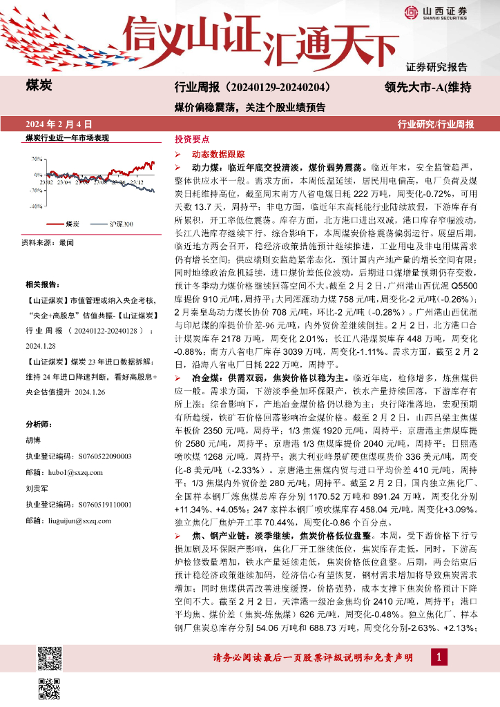 山西证券:行业研究/行业周报:煤价偏稳震荡,关注个股业绩预告.pdf