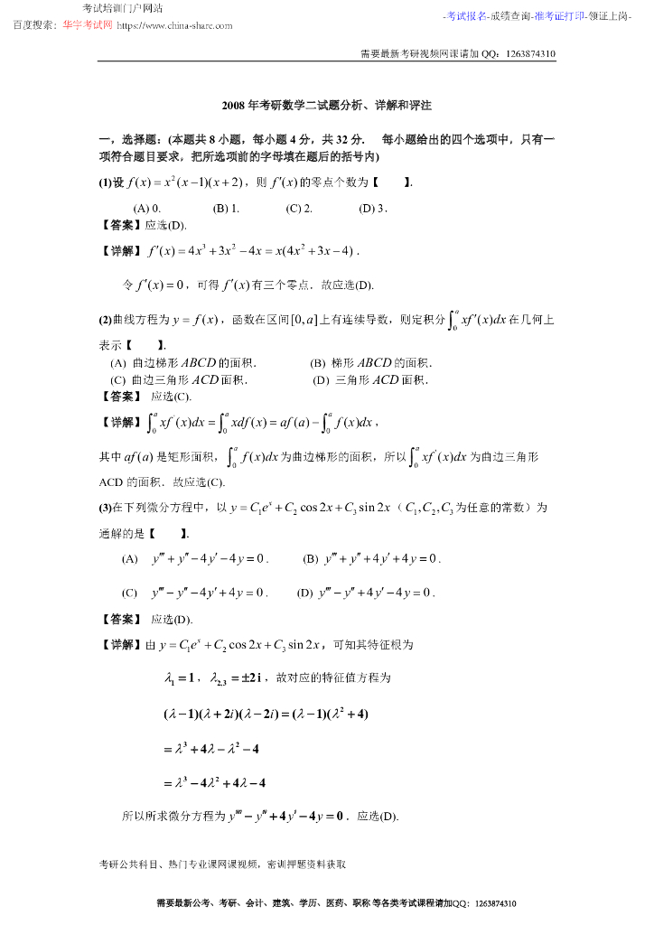 2008 考研数学 数学二.pdf