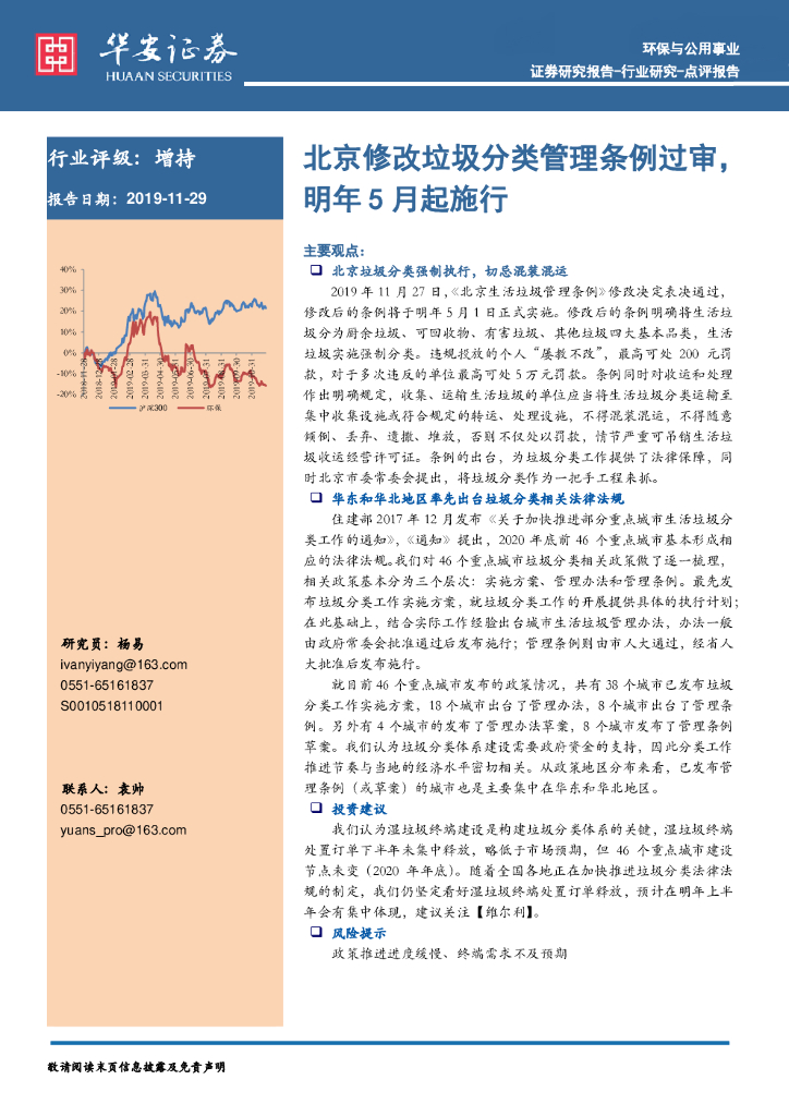 华安证券:环保与公用事业:北京修改垃圾分类管理条例过审,明年5月起施行.pdf