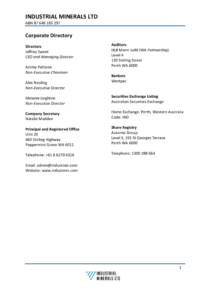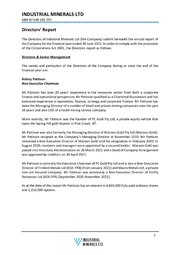 Industrial Minerals Ltd(IND)2022财年年度报告(英文版).pdf